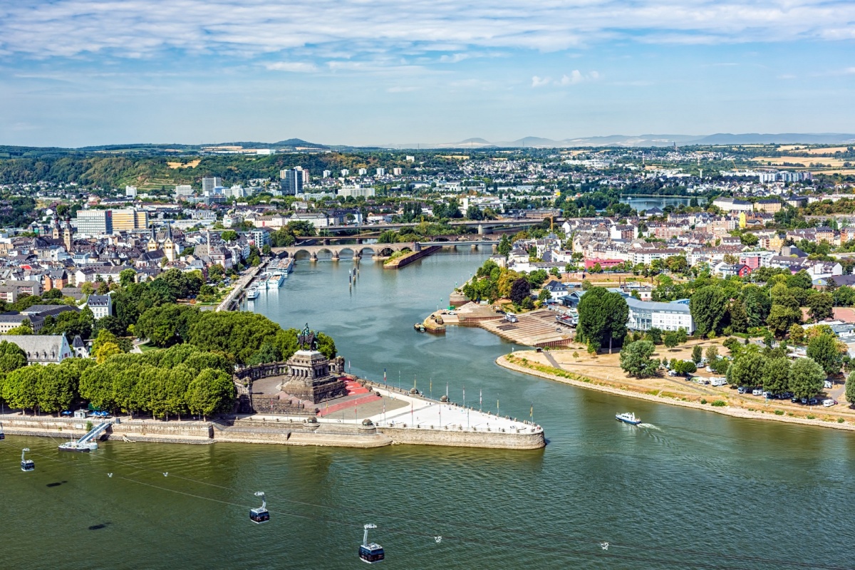Vi anløber Koblenz over middag. Netop her ligger Deutsches Eck, hvor Mosel opsluges af Tysklands største flod, Rhinen. Med svævebanen henover Rhinfloden kan man komme op til den imponerende fæstning Ehrenbreitstein, der knejser stolt over dette strategiske punkt.