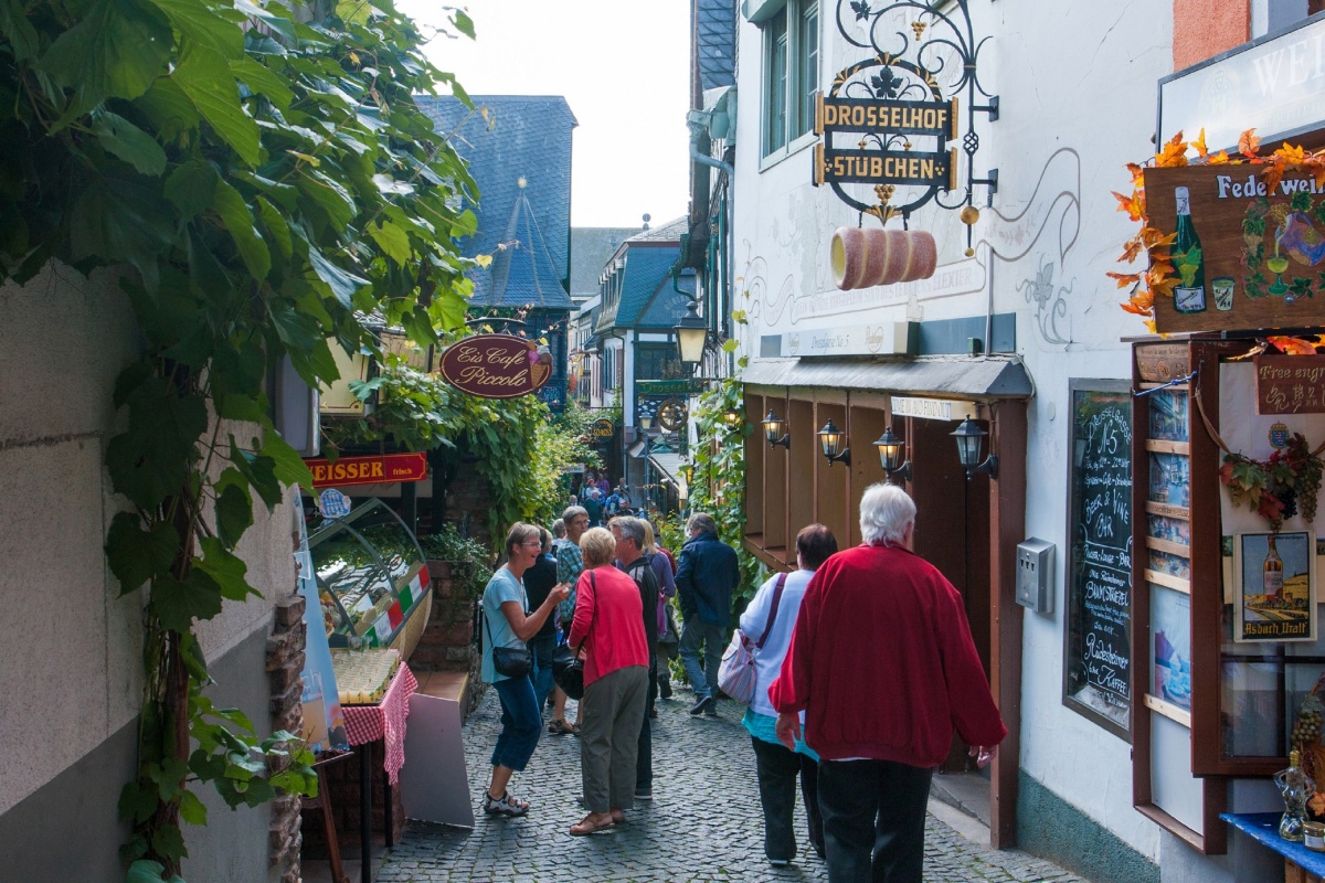 Efter middagen anbefaler vi bestemt, at vi tager en tur i Drosselgasse, hvor der altid er liv og glade dage. Sidst på aftenen sejler vi mod Miltenberg.