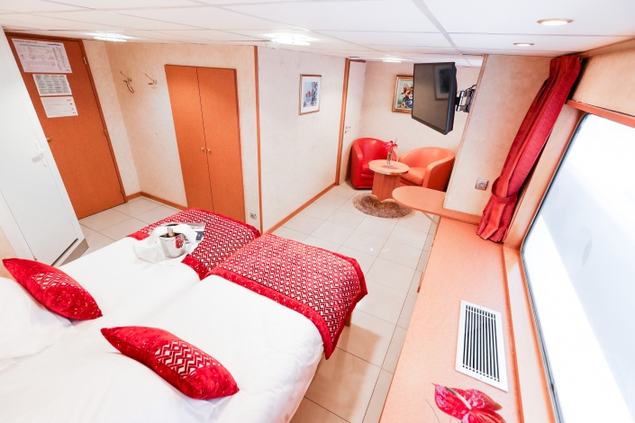 Vi sejler med det flotte M/S Rhône Princess, der er kategoriseret ”4-ankre” fra rederiet CroisiEurope og med plads til 138 gæster i alt. Alle kahytter er udstyret med eget bad, toilet, aircondition m.m. Der er all inclusive om bord på skibet, hvilket betyder fri drikkevarer til frokost og aftensmad om bord og desuden fri bar med udvalgte drikkevarer. Vi lader os opvarte af et venligt og hjælpsomt personale og nyder livet om bord.