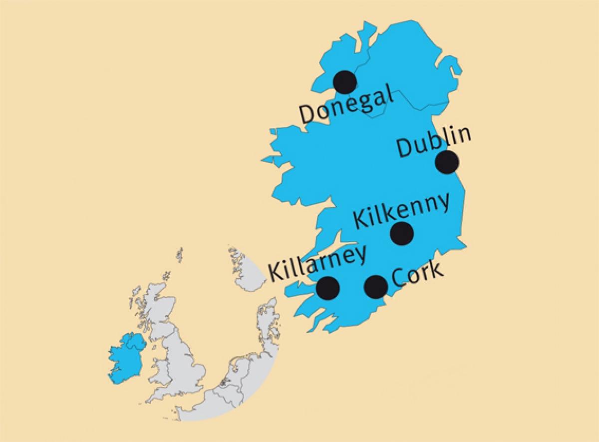 De smalle gyder i Kilkennys historiske centrum er lokalt kendt som ”slips”, og mange af husene er bygget af den sorte kalksten kendt som Kilkenny-marmor, der har gjort byen berømt. Vi går en tur gennem byen og ser bl.a. det runde tårn, et typisk irsk træk, i St Canice Cathedral, katedralen, der ligesom byen er opkaldt efter helgenen St Canice. Vi hører historier og legender som den om en kvindelig pub-ejer fra middelalderen, der blev anklaget for hekseri, og hvad er Kilkenny-katte egentlig? Der er også mulighed for at besøge det imponerende Kilkenny Castle, et af Irlands mest berømte slotte. Det oprindelige stenslot blev bygget i det 12. århundrede til William Marshal og blev hjemsted for den magtfulde Butler-familie i næsten 600 år.