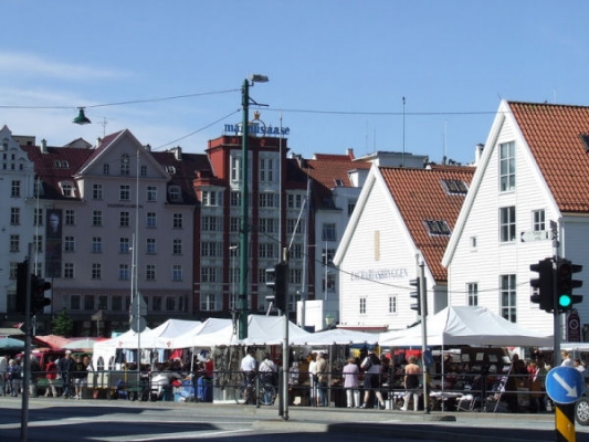 Morgenmad om bord og efter en flot sejlads langs den norske vestkyst ankommer vi til Bergen midt på dagen. Rundtur i Norges næststørste by. Vi ser bl.a. Torget og besøger Fisketorvet, hvor der er mulighed for lækre smagsprøver. På Bryggen fornemmer vi, hvordan handelslivet udfoldede sig imellem værksteder og pakhuse. Der er tilbud om en tur med Fløibanen (ikke inkluderet), der kører 320 meter til vejrs, og som til slut belønner os med en formidabel udsigt over hele byen.