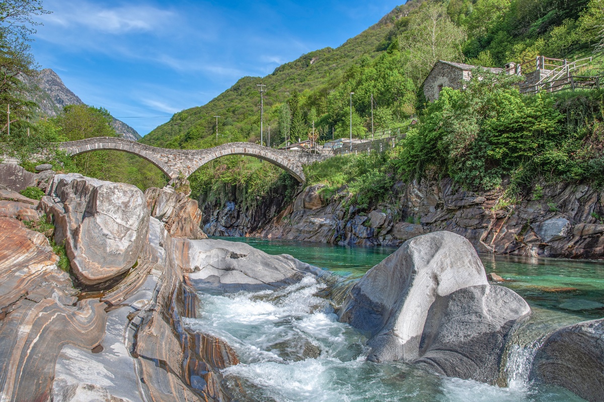 I Verzascadalen tæt ved Locarno og Lago Maggiore besøger vi den over 2000 år gamle romerske kampestensbro, Ponte dei Salti. Vi kommer til Lugano ved Luganosøen hen på eftermiddagen.