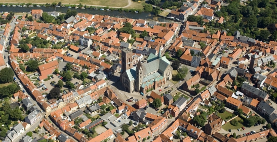 Efter en dejlig morgenbuffet kører vi de få kilometer til Ribe, hvor vi mødes kl. 10 med vores lokale guide, som vil tage os med på en spadseretur i Danmarks ældste by, Ribe. Vi ser havnen med stormflodssøjlen, de brostensbelagte stræder og bindingsværkshuse, og naturligvis skal vi også se og høre om domkirken, og har man mod på det, anbefaler vi absolut en tur op i kirkens tårn. Herefter kører vi en tur til Kammerslusen, hvor Ribe Å løber ud i Vadehavet.